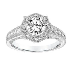 Be the first to review “ArtCarved Bridal Artcarved Bridal Semi-Mounted With Side Stones Vintage Filigree Halo Engagement Ring Liviana 14K White Gold” Cancel reply