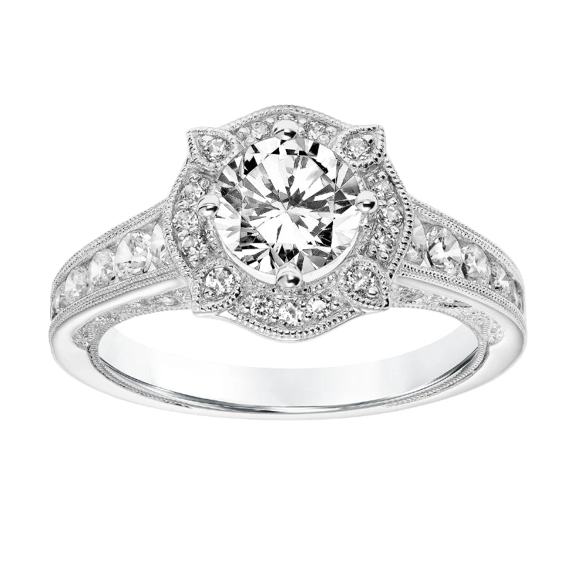 ArtCarved Bridal Artcarved Bridal Semi-Mounted With Side Stones Vintage Filigree Halo Engagement Ring Liviana 14K White Gold