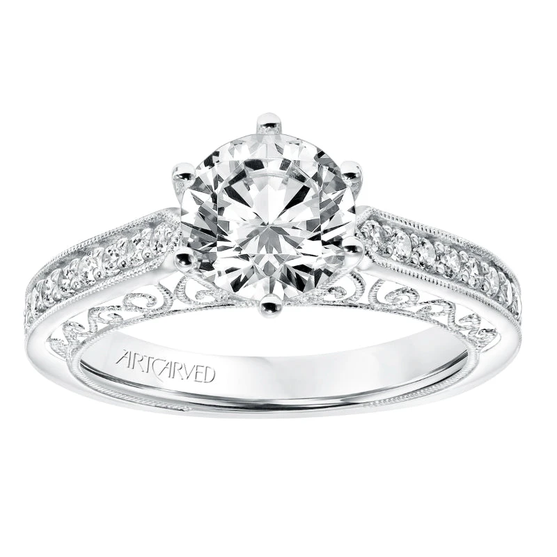 ArtCarved Bridal Artcarved Bridal Semi-Mounted With Side Stones Vintage Heritage Engagement Ring Cossette 14K White Gold