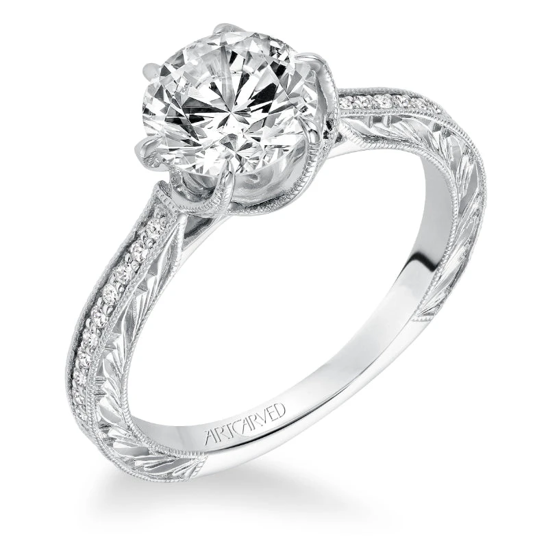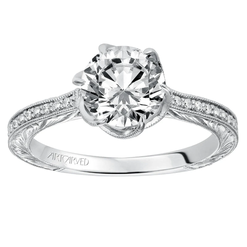 ArtCarved Bridal Artcarved Bridal Semi-Mounted With Side Stones Vintage Vintage Engagement Ring Veva 14K White Gold