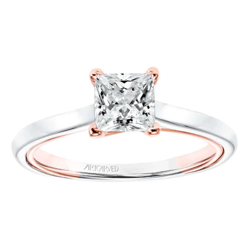 SKU: Y2ZYA 82314728901431 Categories: Engagement Rings, Solitaire Tags: Category_l1: Engagement Rings>Solitaire, Category_l2: Solitaire, Category_tree: Engagement Rings>Solitaire, Center_stone_shape: Princess, Collection: Twist, Designer: ArtCarved Bridal, Gender: Women, Metal_color: White, Metal_type: 14k Gold, Rose