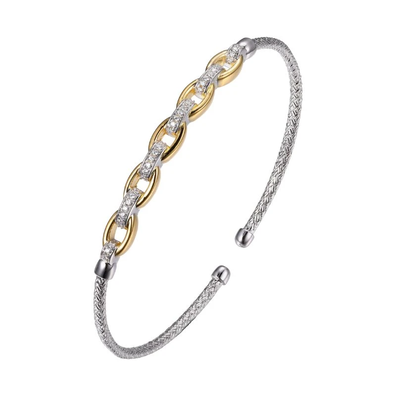 Charles Garnier Charles Garnier Sterling Silver 2mm Mesh Cuff With CZ 2 Tone Rhodium And 18K Yellow Gold Finish