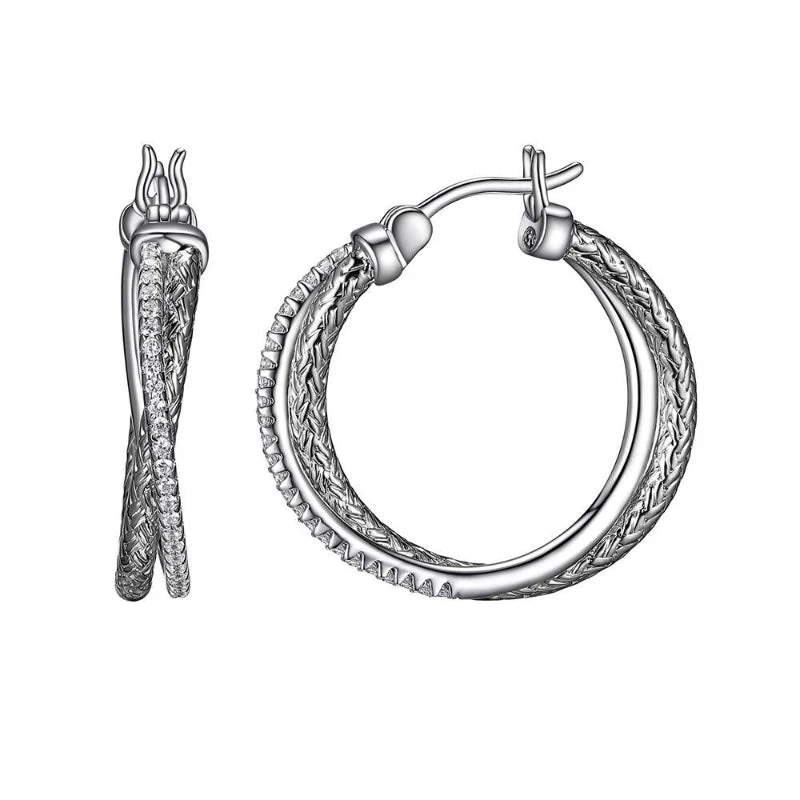 Charles Garnier Charles Garnier Sterling Silver 2mm Mesh With CZ Hoop Earrings Approximate Round 25mm Rhodium Finish