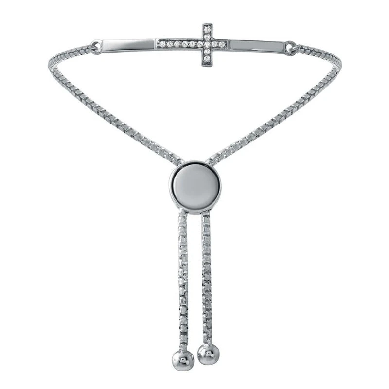 Sterling Silver Bolo Bracelet with CZ, Rhodium Finish