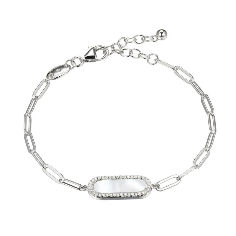 Charles Garnier Charles Garnier Sterling Silver Bracelet Made With Paperclip Chain (3mm) And Mother Of Pearl With CZ (18x6mm) In Center