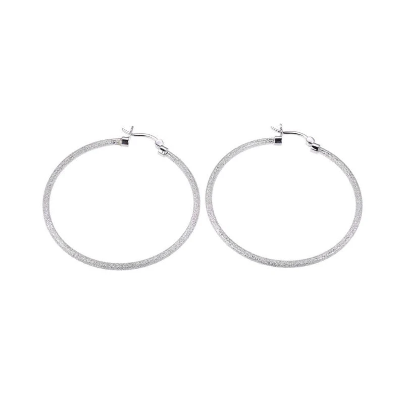 Sterling Silver Hoop Earrings, Round approximate 45mm, Rhodium Finish