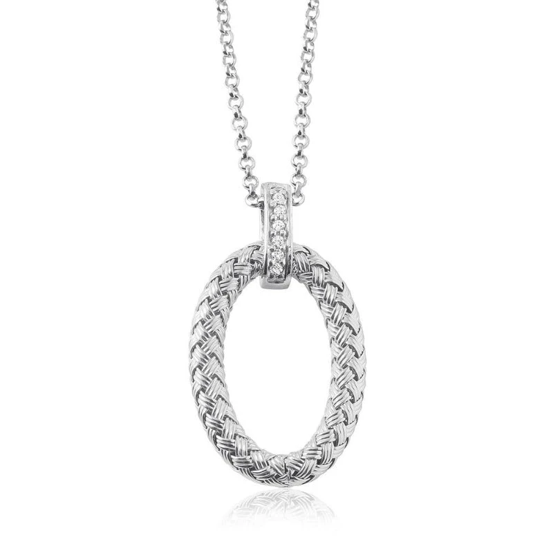 Sterling Silver Mesh Necklace with CZ, 17”+2”, Rhodium Finish