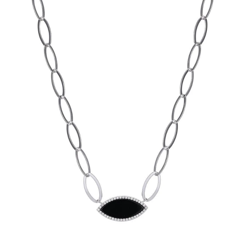 Charles Garnier Charles Garnier Sterling Silver Necklace Made Of Marquise Chain (8mm) And Black Onyx With CZ (2x9x1mm) In Center