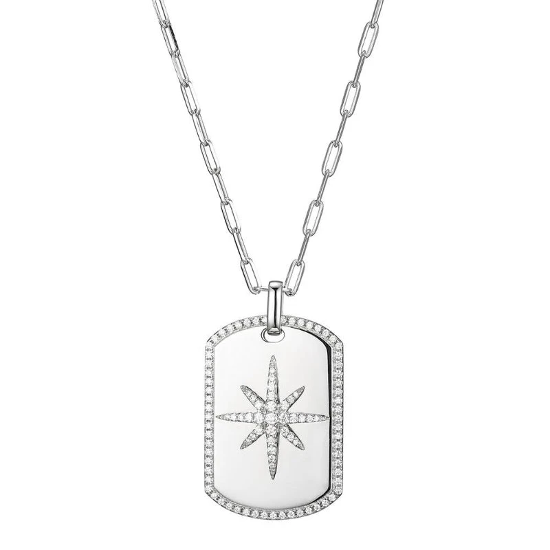 Charles Garnier Charles Garnier Sterling Silver Necklace Made With Paperclip Chain (2mm) And CZ Starburst Pendant (34x2mm)