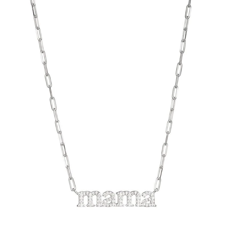 Charles Garnier Charles Garnier Sterling Silver Necklace Made With Paperclip Chain (2mm) And CZ Word ”MAMA” In Center