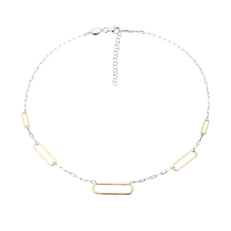 Sterling Silver Necklace made with Paperclip Chain (2mm) and Paperclip Stations, Measures 36” Long, 2 tone, Rhodium and 18K Yellow Gold Finish