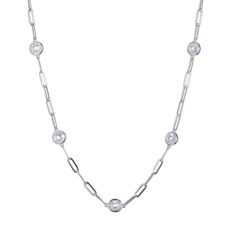Charles Garnier Charles Garnier Sterling Silver Necklace Made With Paperclip Chain (3mm) And 7 Pieces Cz (Stone Size 6Mm) Station