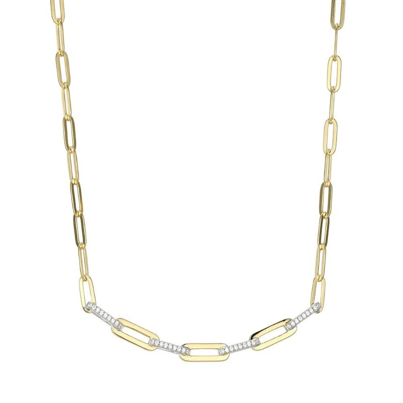 Sterling Silver Necklace made with Paperclip Chain (3mm) and CZ, Measures 17” Long, Plus 2” Extender for Adjustable Length, 2 Tone, 18K Yellow Gold and Rhodium Finish