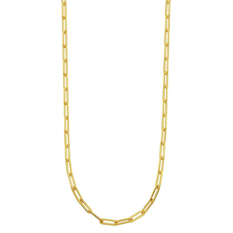 Sterling Silver Necklace made with Paperclip Chain (5mm), Measures 36” Long, 18K Yellow Gold Finish