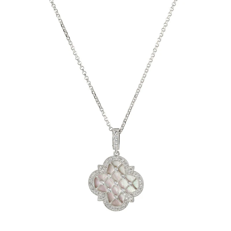 Charles Garnier Charles Garnier Sterling Silver Necklace With Mother Of Pearl And CZ 17”+2” Rhodium Finish