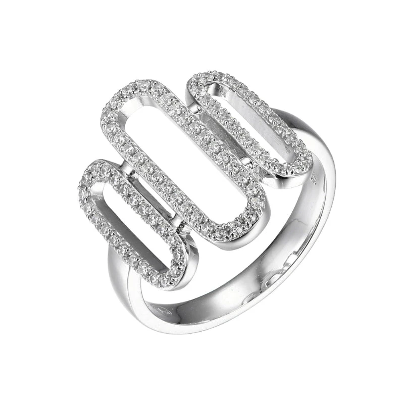 Sterling Silver Ring with Multi CZ Paperclip Links, Size 6, Rhodium Finish