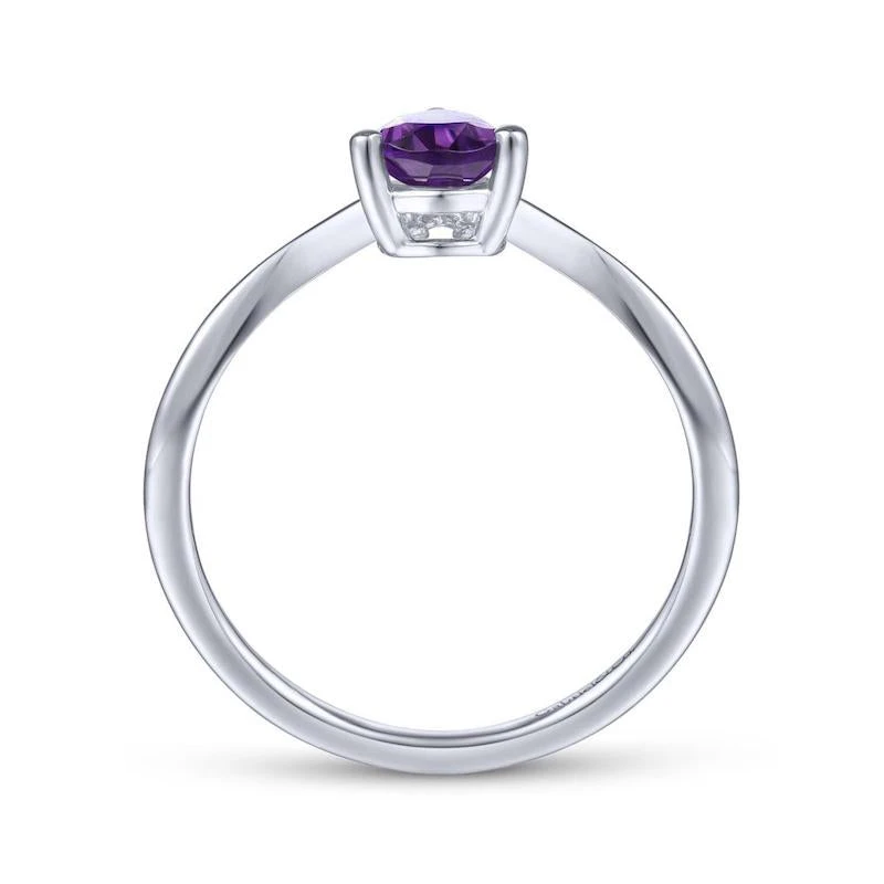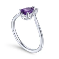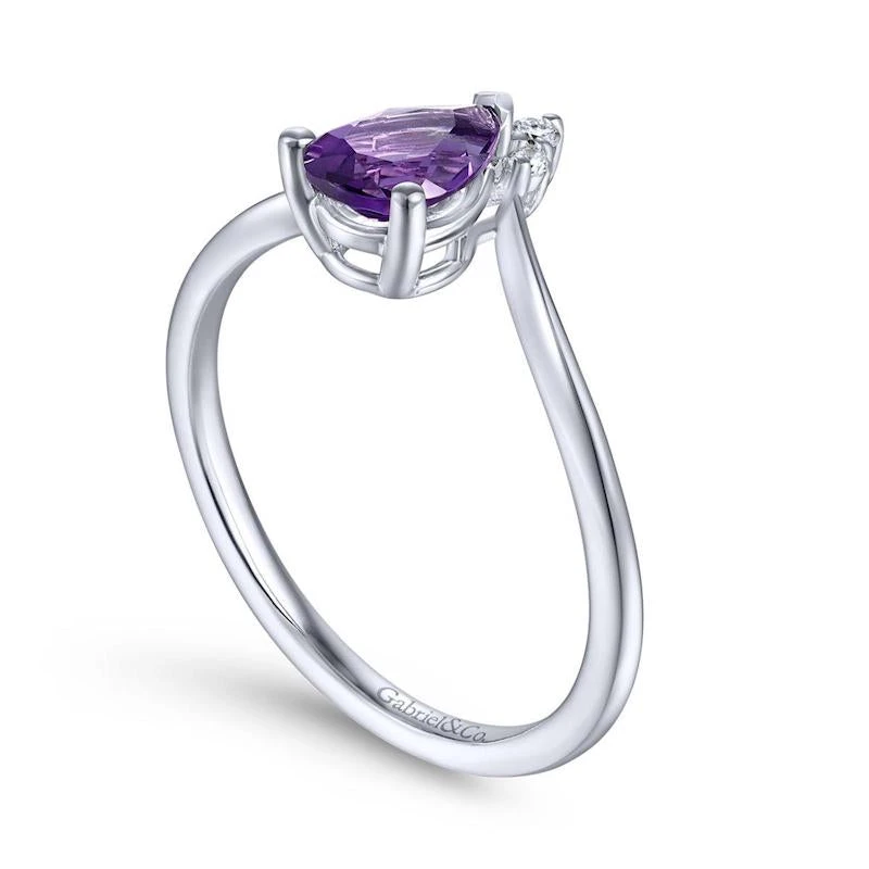 14k White Gold Pear Shaped Amethyst & Diamond Fashion Ring