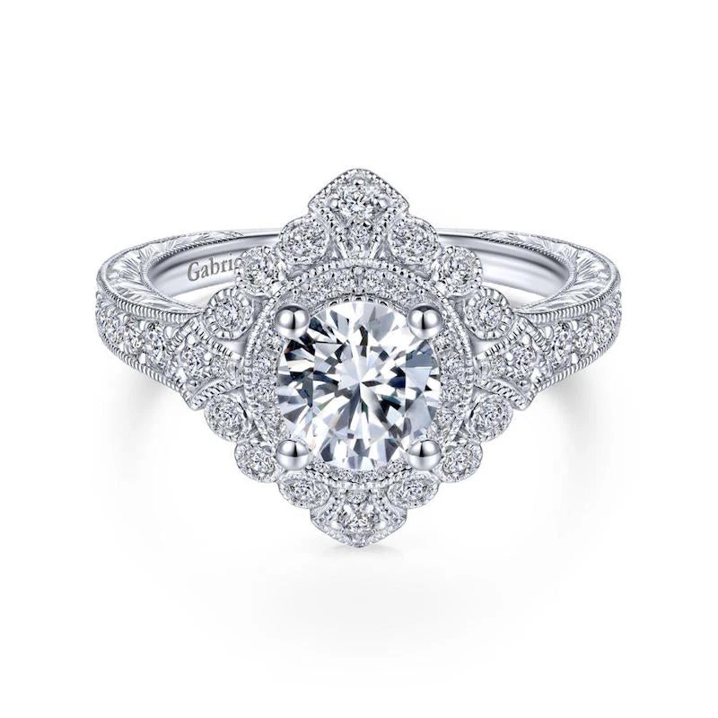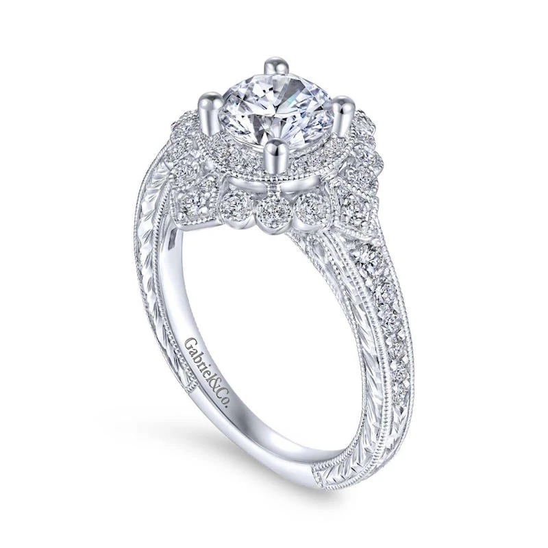 Gabriel & Co. Gabriel & Co. 14k White Gold Art Deco Halo Engagement Ring