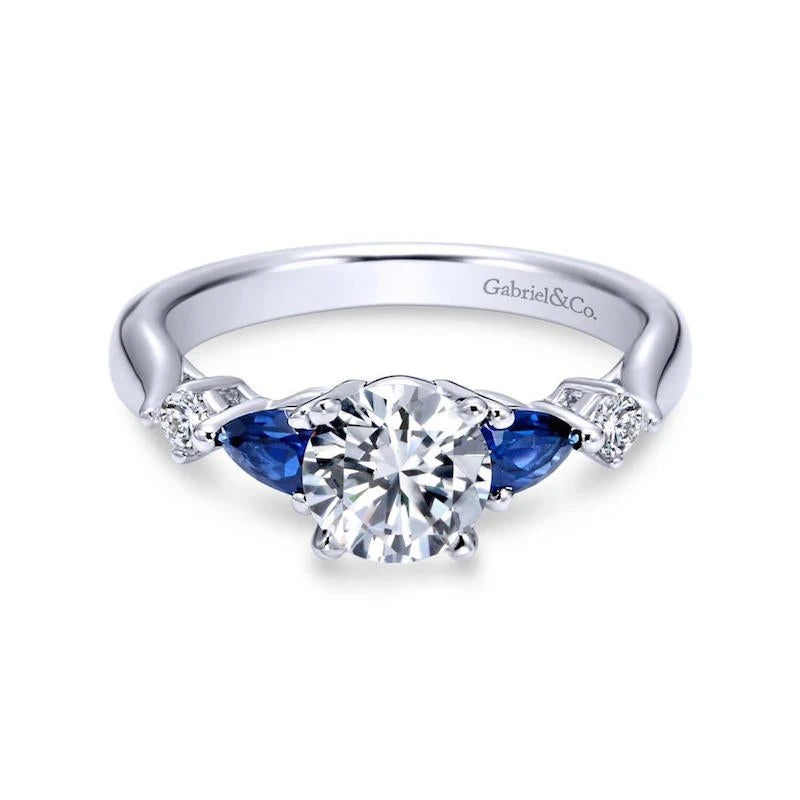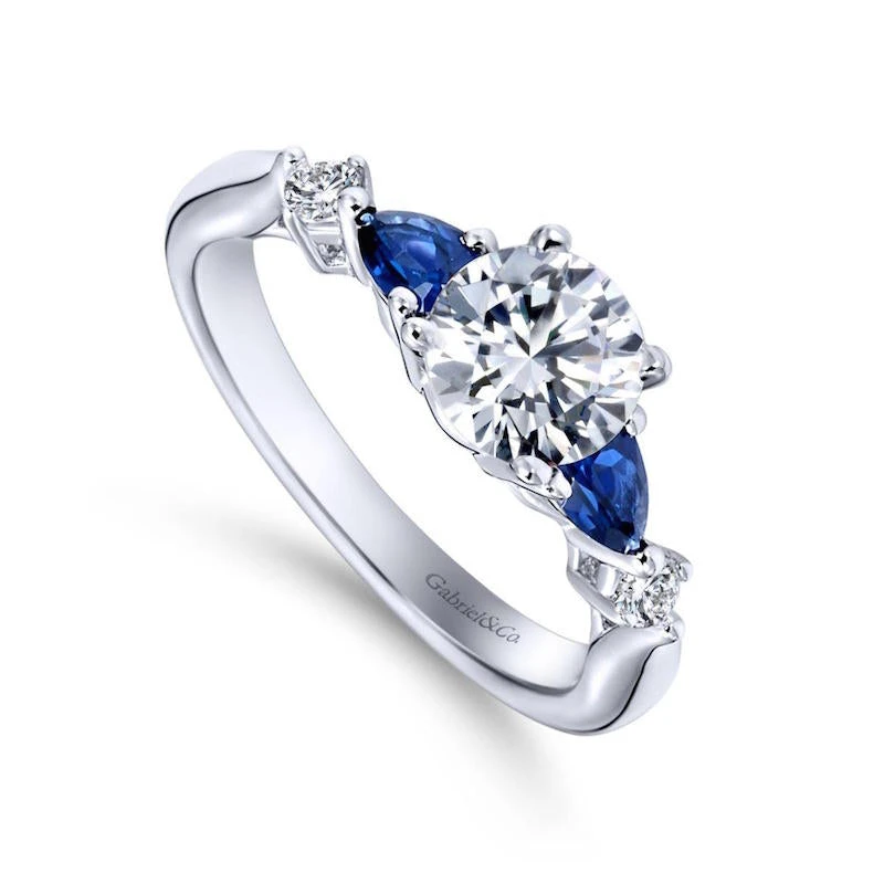 Gabriel & Co. Gabriel & Co. 14k White Gold Contemporary 3 Stone Diamond & Gemstone Engagement Ring