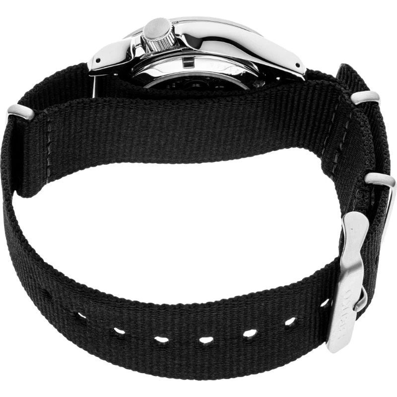 Manual and automatic winding capabilities. 21,600 vibrations per hour. Power reserve: approximately 41 hours. 24 jewels. Gray sunray dial. Day/date calendar. LumiBrite hands and markers. Case diameter: 40.0mm. Stainless steel case. Black nylon strap Water-resistant to 10 bar, 100 meters (300 feet). Caliber 4R36. . . . . . . . . . .