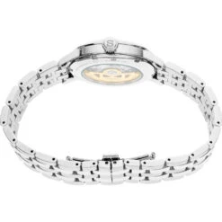 Fine mechanical watchmaking from Japan. Manual and automatic winding capabilities. 21,600 vibrations per hour. Power reserve: approximately 41 hours. 23 jewels. Ice blue dial with pressed pattern and gloss finish Date calendar Box-shaped crystal. Screwdown see-through caseback. Case diameter: 40.5mm. Stainless steel case and bracelet Double deployment clasp with push button release. Water-resistant to 5 bar, 50 meters (165 feet). Caliber 4R35. . . . . . . . . . .
